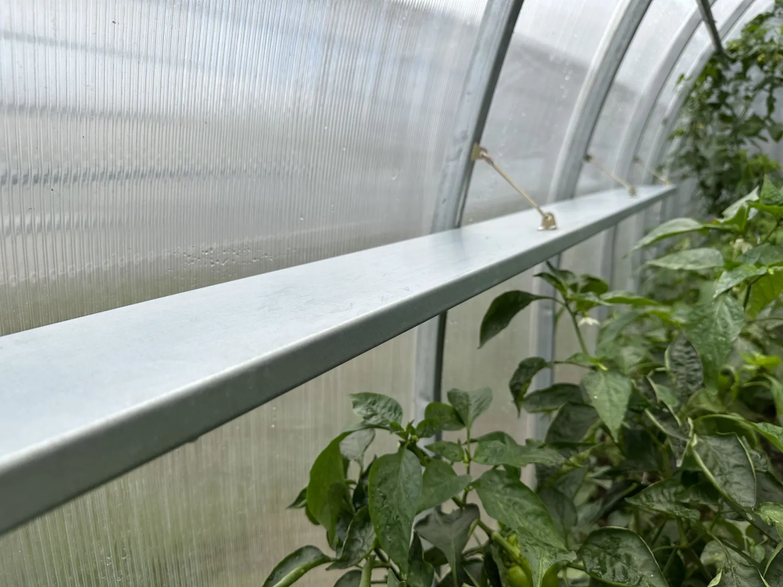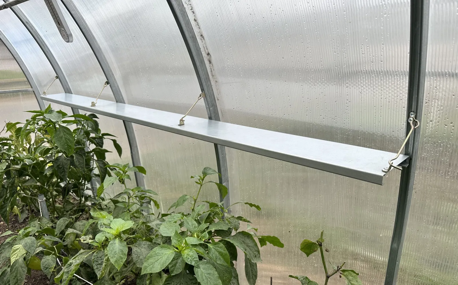 Eine robuste Ablage aus feuerverzinktem Metall vergrößert die Nutzfläche des Gewächshauses