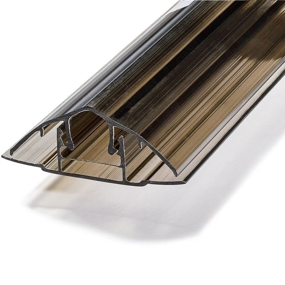 Teilbares Verbindungsprofil für Polycarbonat 8–10 mm dient zur zuverlässigen und dichten Verbindung von Polycarbonatplatten. Hergestellt aus Polycarbonat mit UV-Schutz, erleichtert und beschleunigt die Montage erheblich, gleicht thermische Ausdehnungen aus und sorgt für ein sauberes, ästhetisches Erscheinungsbild der Konstruktion. Profillänge 6 m, Farbe transparent oder bronze.